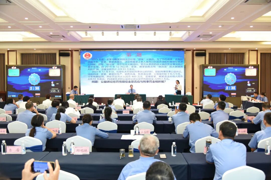 决赛当天,选手们按照抽签结果分为十组,确定公益诉讼起诉人和被告方角色进入考场,根据抽到的题目,对案件进行分析,准备辩论材料。各地领队和未进入决赛的其他选手进行观赛和监督,让每位参与其中的公益诉讼检察人员有所思、有所悟、有所获,真正达到以赛促学、以赛代训、以赛致用。
