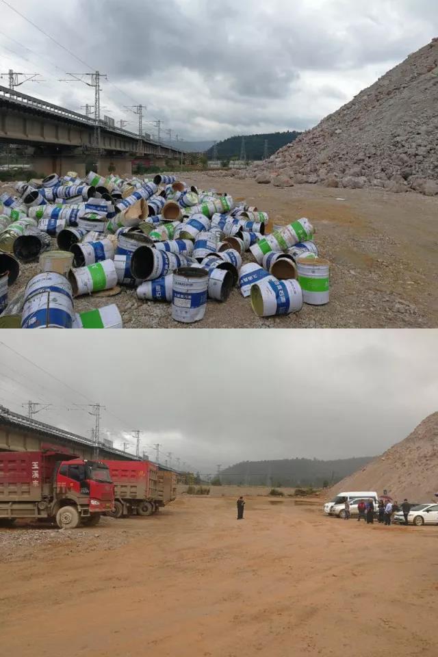 柴河双线特大桥旁石渣山堆积过近问题整改前后对比
