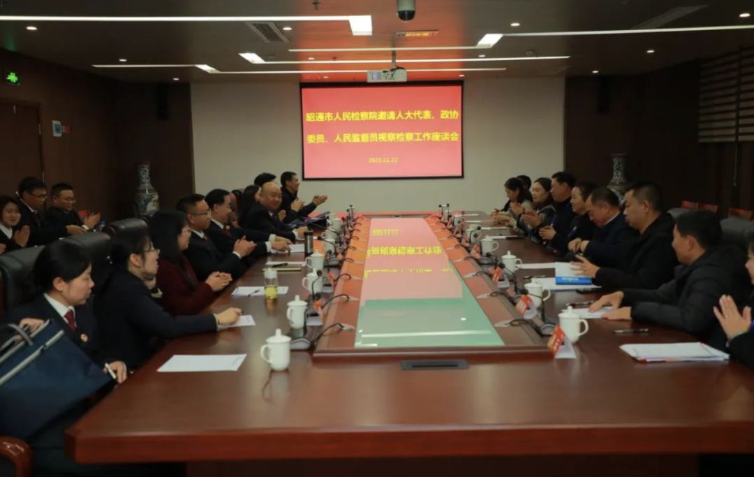 参观结束后,昭通市检察院邀请人大代表、政协委员、人民监督员视察检察工作座谈会在理世集团举行。检察机关与代表委员进行面对面交流,听取意见建议。